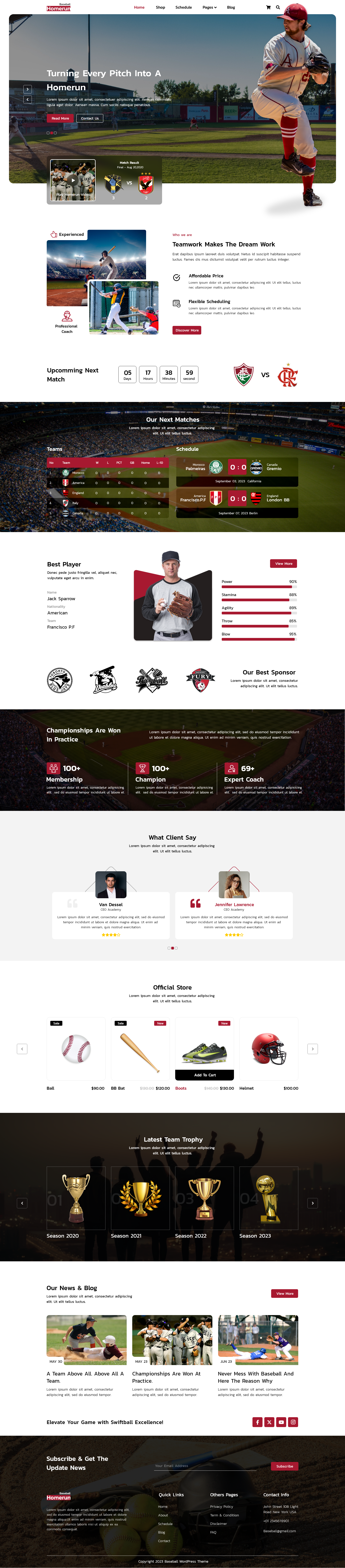 The Baseball WordPress Theme is a sophisticated and feature-rich template designed specifically for baseball enthusiasts, teams, and sports bloggers aiming to establish a dynamic online presence. This premium theme seamlessly blends aesthetics with functionality, offering a user-friendly interface that caters to individuals with varying levels of technical expertise. Its intuitive customization options empower users to effortlessly set up and manage their websites, ensuring a seamless experience throughout. The theme's clean and modern layout, complemented by a thoughtfully selected colour palette and typography, creates an immersive experience for visitors. Moreover, its responsive design guarantees optimal viewing and functionality across a range of devices, from desktops to smartphones, fostering a consistent and engaging browsing experience.