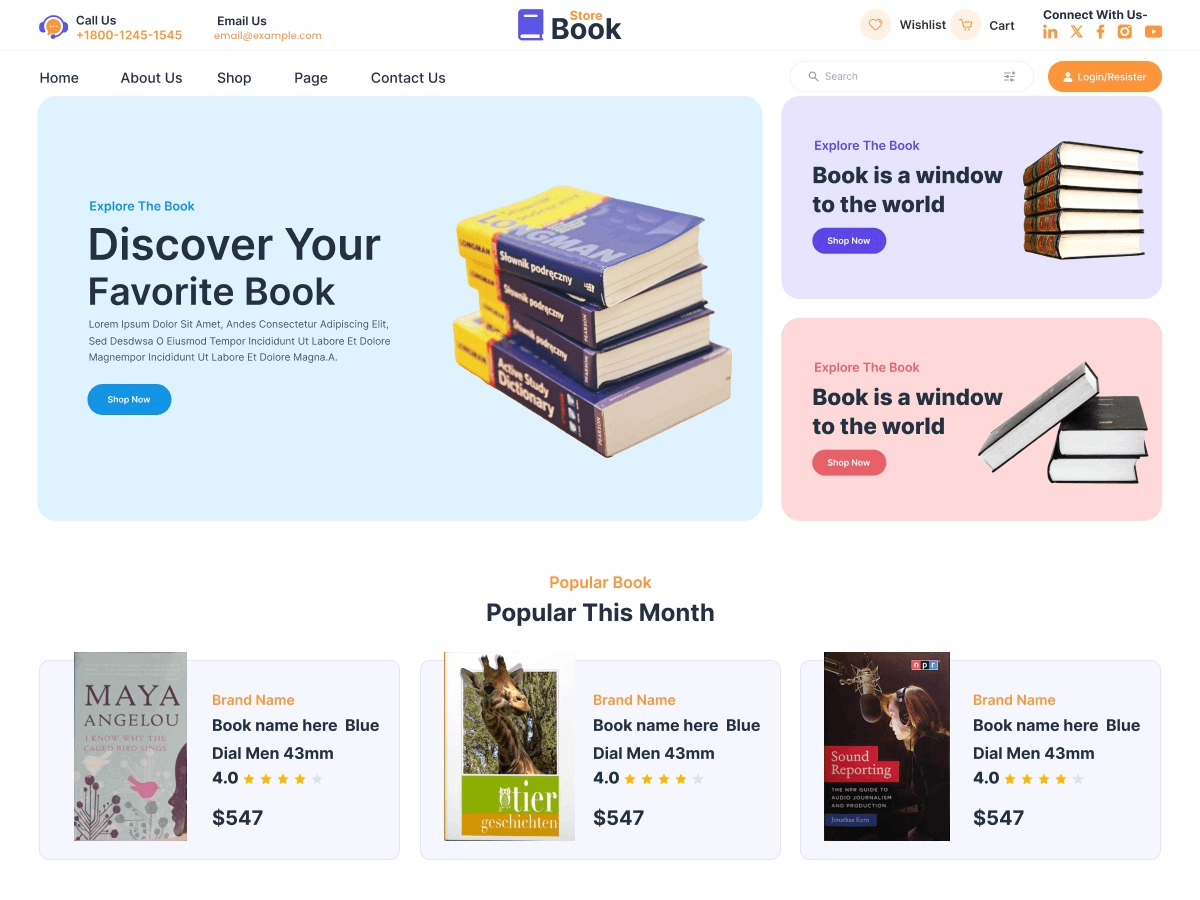 In addition to these key aspects, the Free Book Store WordPress Theme comes with a list of functions that not only make the shopping experience more enjoyable but also make your website more attractive. The testimonial part is one of the key ones where you can present the customer comments and ratings. This forms a bond with the customer and thus provides a reason for the purchase. A dynamite sales promotional banner is another good thing because it will let customers know about discounts, new book releases, and special deals that take place at the store on the home page immediately. In this way, you will attract the attention of your visitors quickly and sales will increase. On the other hand, the team section will help you to identify your staff or recommend the renowned ones, which will bring out the human bond, one like in a small bookshop, could be going in for one's customers. The built-in blog support is a new tool that will aid you in this initiative, as you can offer book reviews, industry news, and literary discussions to both learn from and entertain your audience. Another crucial asset is the SEO-optimized structure, which will make your store appear higher in search results and cause more traffic. Finally, the social media integration feature allows for the smooth transfer of your book listings and blog posts across platforms such as Facebook, Twitter, and Instagram, hence the bookstore makes it to a wider audience. All these additions make this a complete online bookstore with the main aim of not only running a company efficiently but also of fashioning a platform for passionate readers and collectors to have discussions and share their views.