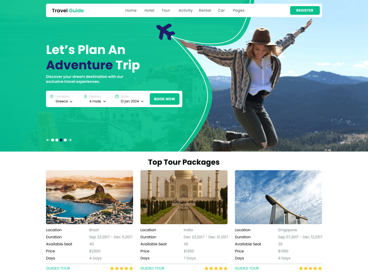 - Tour Packages Showcase to highlight different travel options and experiences.