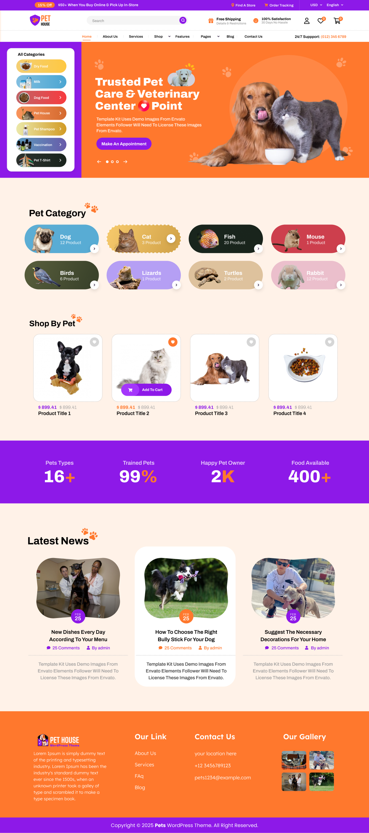 The Pet Shop Theme is carefully designed to help pet shops, animal clinics, grooming centers, and passionate pet lovers create a stunning online presence quickly and easily. With its highly intuitive and user-friendly interface, lightweight structure, and fully mobile-responsive design, this theme ensures your website looks professional on all devices without any technical hassle. Built on the powerful Full Site Editing (FSE) framework, it provides complete flexibility, allowing you to customize layouts, headers, footers, colors, fonts, and sections effortlessly. Whether you want to showcase a variety of pet products, promote animal adoption programs, or run a comprehensive pet grooming service, the Pet Shop Theme delivers unmatched performance and versatility. Even users with no coding knowledge can make their website visually appealing, engaging, and functional with this fully customizable theme.